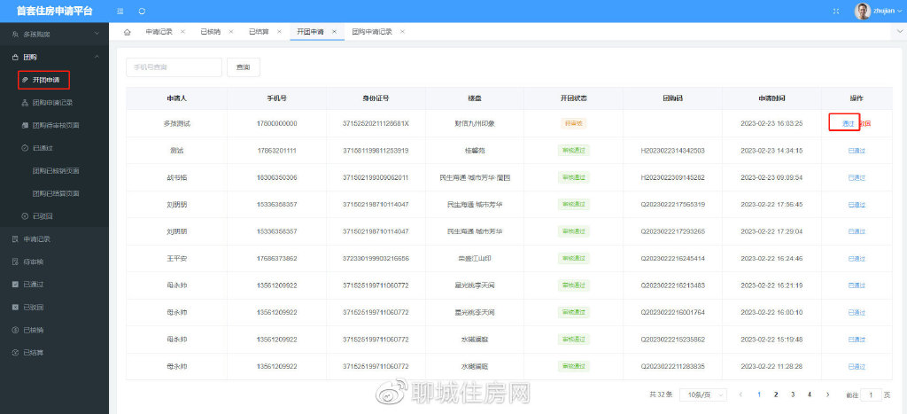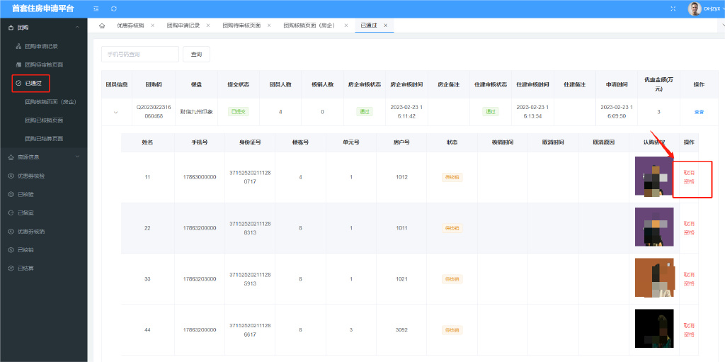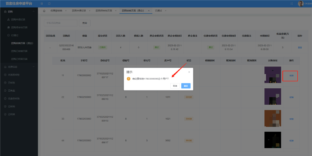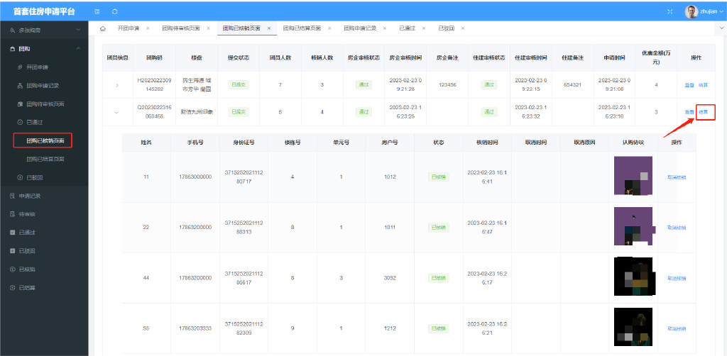 7、团购申请中的成员核销完毕后(核销的人数在20或者54以上),可以由住建部门进行结算