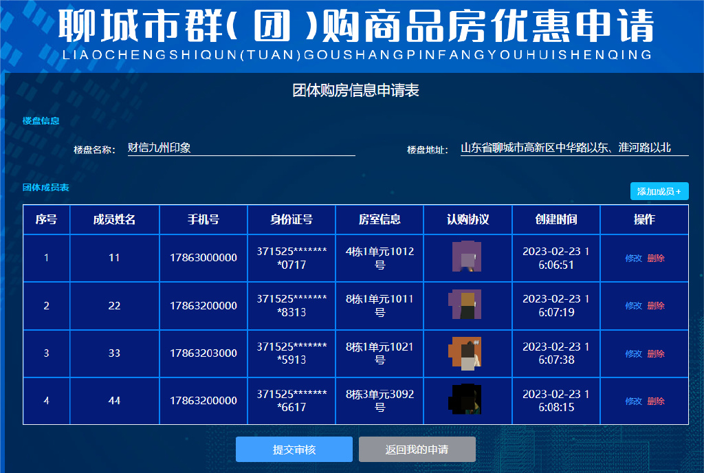 3、审核通过后会形成团购码,团员管理中增加/修改/删除成员。