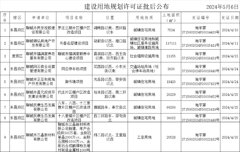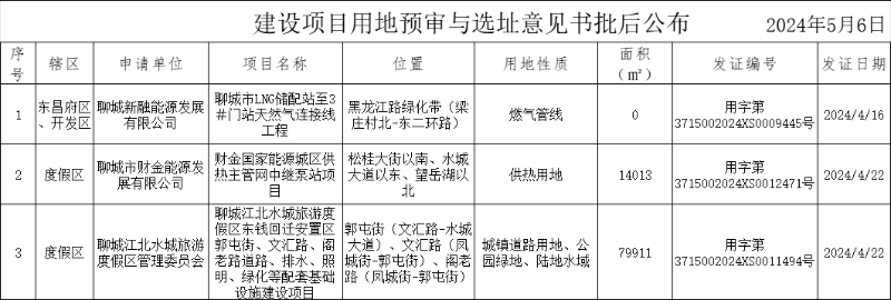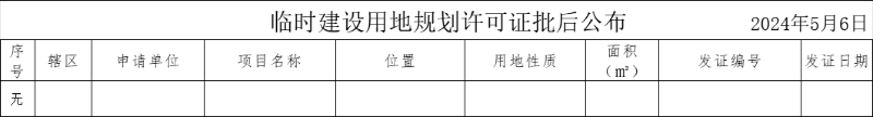 4月份建设用地规划许可证、建设项目用地预审与选址意见书、临时建设用地规划许可证批后公布
