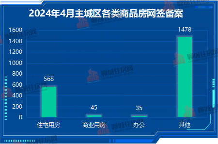 据住房网不完全统计,2024年4月份聊城市主城区商品房网签备案数据共计2126套!其中,住宅用房共568套,商业用房45套,办公35套,其他(车位、储藏室等其它房屋)为1478套。与3月份比较来说,网签总数增加了795套。