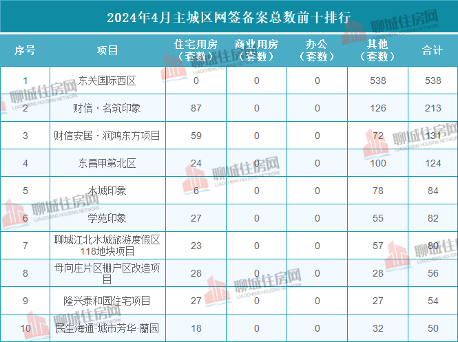 从网签备案总数来看,最多的为东关国际西区,共538套,其次为财信·名筑印象第二,共213套,第三名为财信安居·润鸿东方项目,共131套。