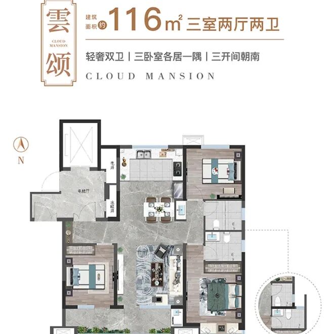 建筑面积约100-155㎡宽幕奢宅,全系精工打造,主城高品质生活典范!