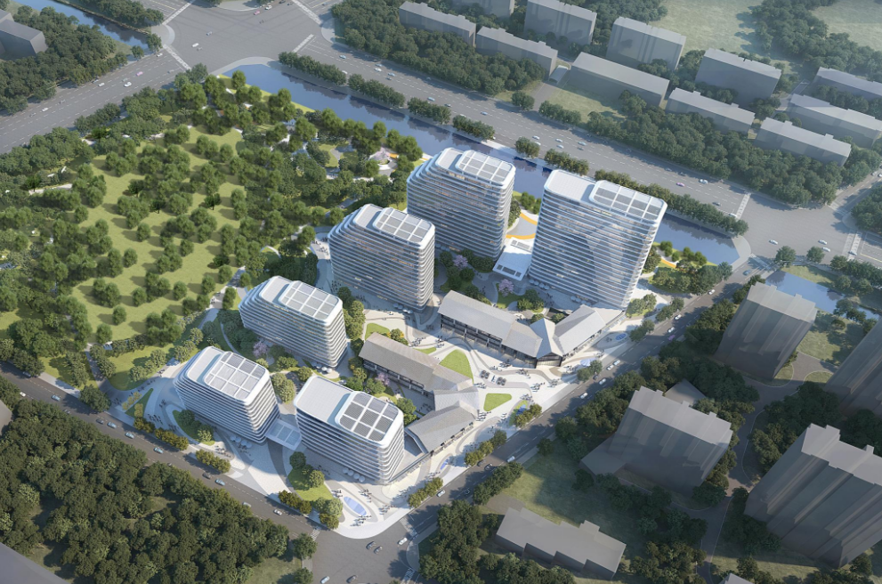 方鼎深蓝中心文创产业园项目总占地面积为35271㎡,总建筑面积为89400㎡。 从平面图看,项目规划设计容积率约2.5,项目规划8栋楼。其中: 1#-A楼18层,为商务办公; 1#-B楼21层,为研发办公; 2#楼16层,为科创办公; 3#楼3层,为零售商业; 4#楼12层,为总部办公; 5#楼3层,为购物中心; 6#楼12层,为宾馆; 7#楼9层,为文创办公服务型公寓。 建筑密度30%,绿地率30%,停车位(地上83个、地下494个)577个,非机动车停车位(地上1117个、地下997个)2114个。