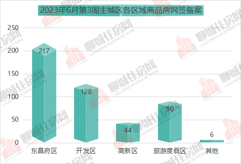 从区域网签数据来看,网签量最多的为东昌府区,217套,其中住宅用房网签115套,商业用房3套,其他99套;开发区位居第二,共计128套,其中住宅用房59套,其他69套;第三名为旅游度假区,共90套,其中住宅用房19套,其他71套;第四名为高新区,共44套,其中住宅用房8套,商业用房1套,办公1套,其他34套;位列最后的为其他区域,共6套,其中住宅用房4套,其他2套。