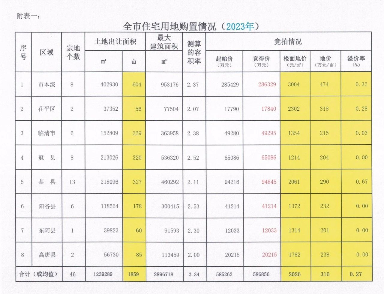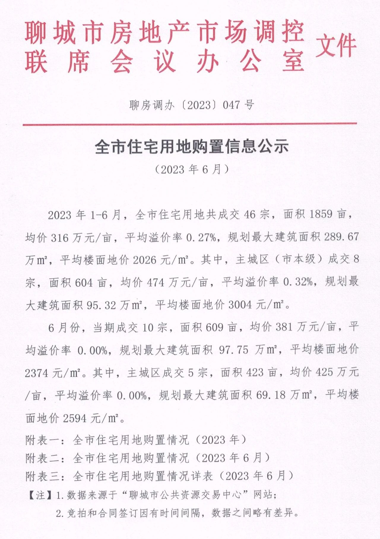 2023年1-6月,全市住宅用地共成交46宗,面积1859亩,均价316万元/亩,平均溢价率0.27%,规划最大建筑面积289.67万㎡,平均楼面地价2026元/㎡。其中,主城区(市本级)成交8宗,面积604亩,均价474万元/亩,平均溢价率0.32%,规划最大建筑面积95.32万㎡,平均楼面地价3004元/㎡。
