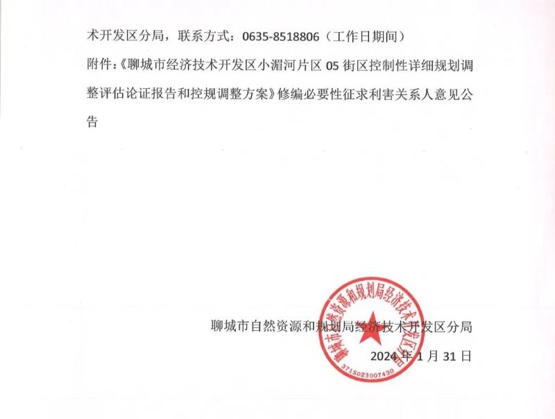 规划名称:聊城市经济技术开发区小湄河片区05街区控制性详细规划调整评估论证报告和控规调整方案